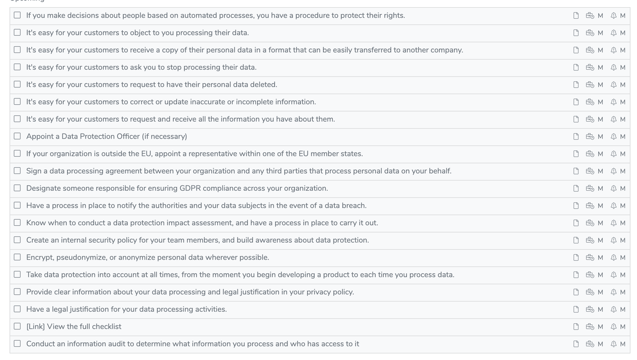 A checklist for ensuring you are GDPR compliant. Good luck with this one!